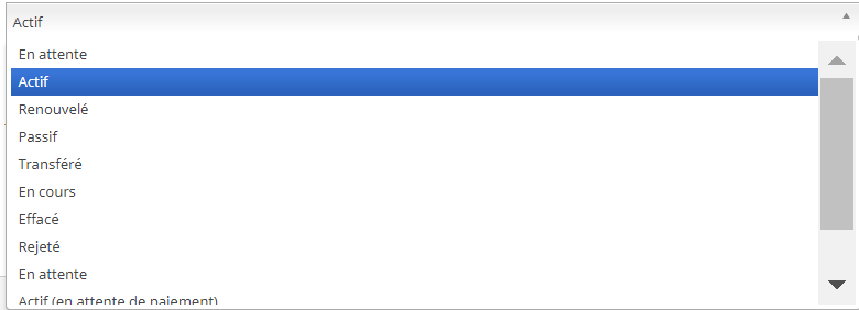 S'il vous devez supprimer le dernier enregistrement, assurez-vous qu'il existe au moins un autre enregistrement «passif» ou «actif». S'il n'y a pas d'autres enregistrements «Passif» ou «Actif», remplacez le dernier «Renouvellement» par «Passif» avant de changer le statut de l'enregistrement le plus récent en «Effacé ».