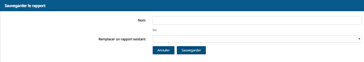 Entrez le nom du rapport ou remplacez le rapport existant. Cliquez sur "Sauvegarder".